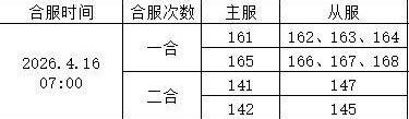 合服时间:4月16日7:00