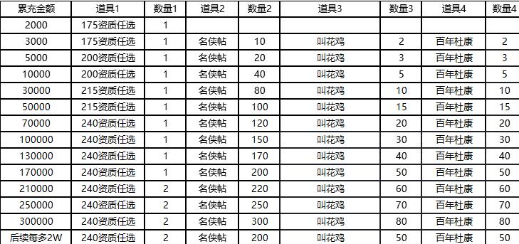 活动规则:从创角时开始计算,总累充返利每个档次奖励终身仅可领取1次