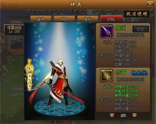 调整了神兵幻化系统提示,玩家鼠标移动到幻化图标可查看该幻化卡的幻化外显效果。以及增加了玩法说明。