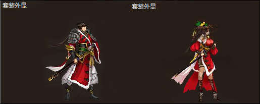 新增暗金外显时装圣诞套装(男)”“圣诞套装(女)”玩家可以在“洛阳集市珍品兑换”和精彩活动“限时累充”中获得。