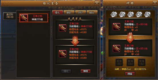 当玩家装备等级达到神装120级以上可点击【强化】-【神铸】进入.