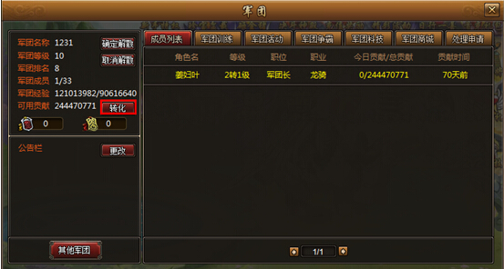 玩家可进入军团页面点击转化,每次可使用10000个人贡献转化士气,每次转化都有概率出现2倍、4倍、6倍、8倍、10倍暴击。每日只能转化10次