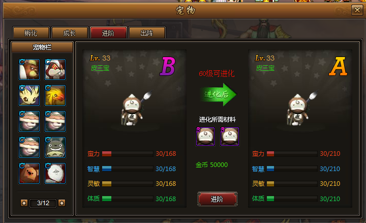 选择需要进阶的宠物进行进阶
