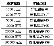 【活动内容】活动期间,单笔充值一定数量以上的元宝即可获得对应档次的奖励,每档奖励获得次数不限。