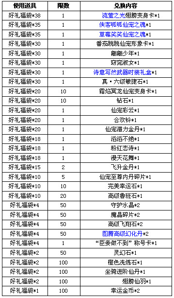 【活动内容】活动期间,使用一定数量的好礼福袋可兑换以下奖励。