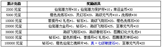 温馨提示:活动期间累计充值元宝达到对应条件,奖励由邮件发放,请注意领取。