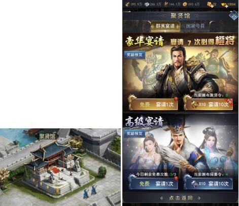 玩家进行宴请,可招募到武将,若招募到已有武将,则会直接转化为将魂,将魂可以用于武将培养,也可激活为武将使用。