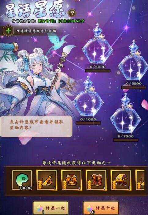 活动期间4000玉=10许愿星辰,上限买5次,勾玉大于5w时结合个人需要购买