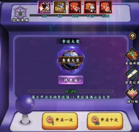 活动期间2000玉=10奖券,上限买10次,勾玉大于4w时结合自身需要买