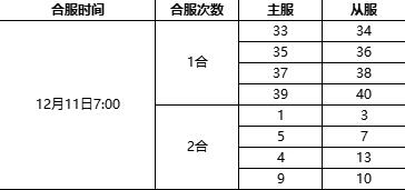 合服时间:12月11日7:00