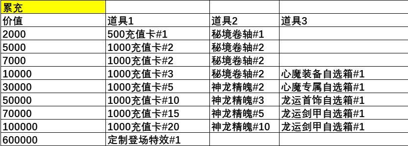 活动规则:从创角时开始计算,总累充返利每个档次奖励终身仅可领取1次