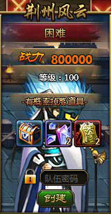 新增80W战力跨服副本《荆州风云·困难》,获得的宝箱有概率可以开出神兵部件。